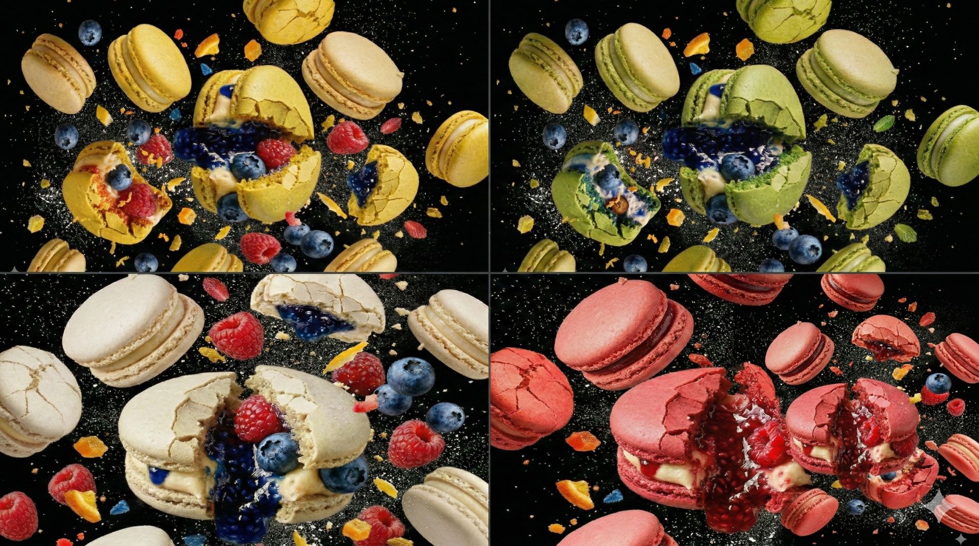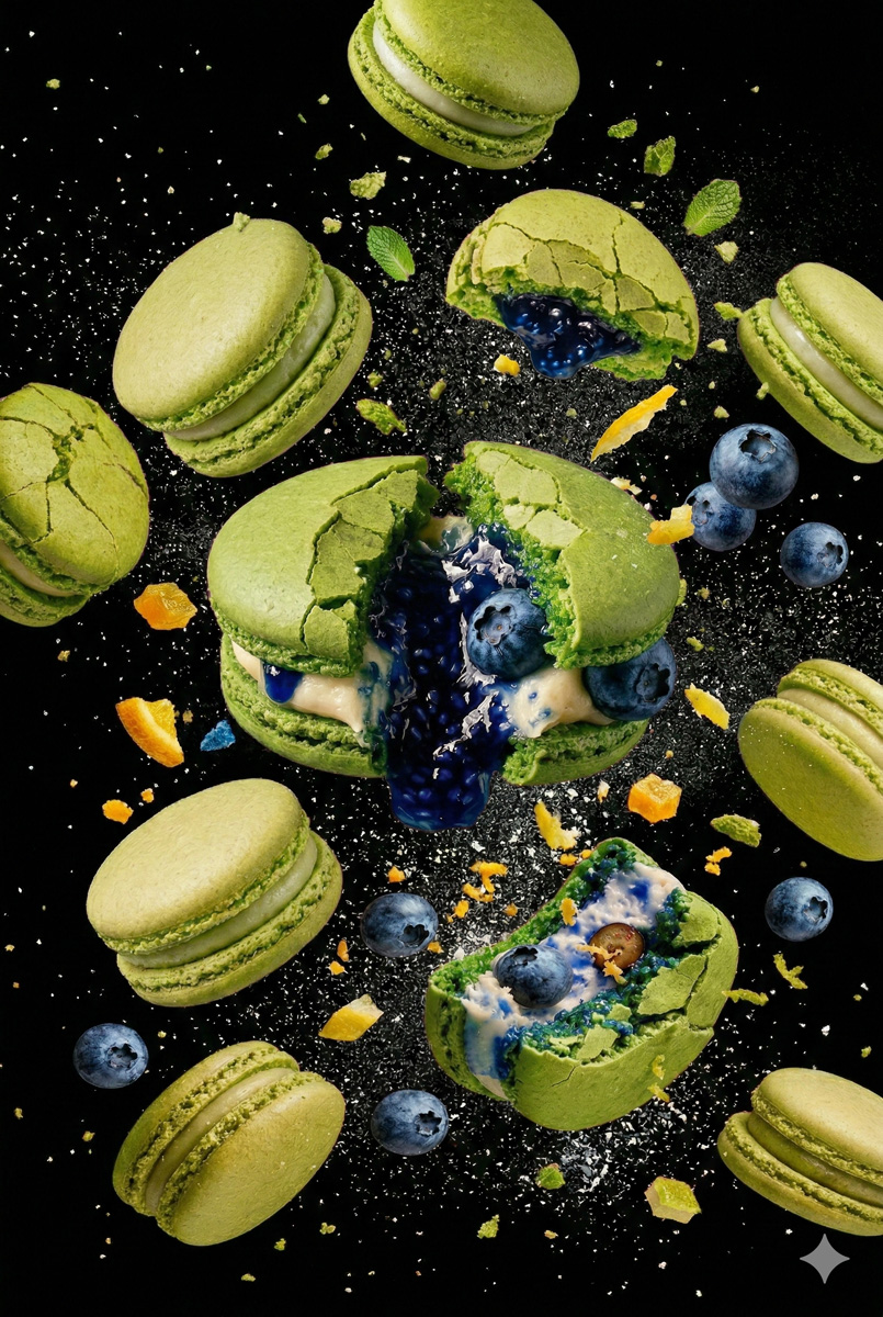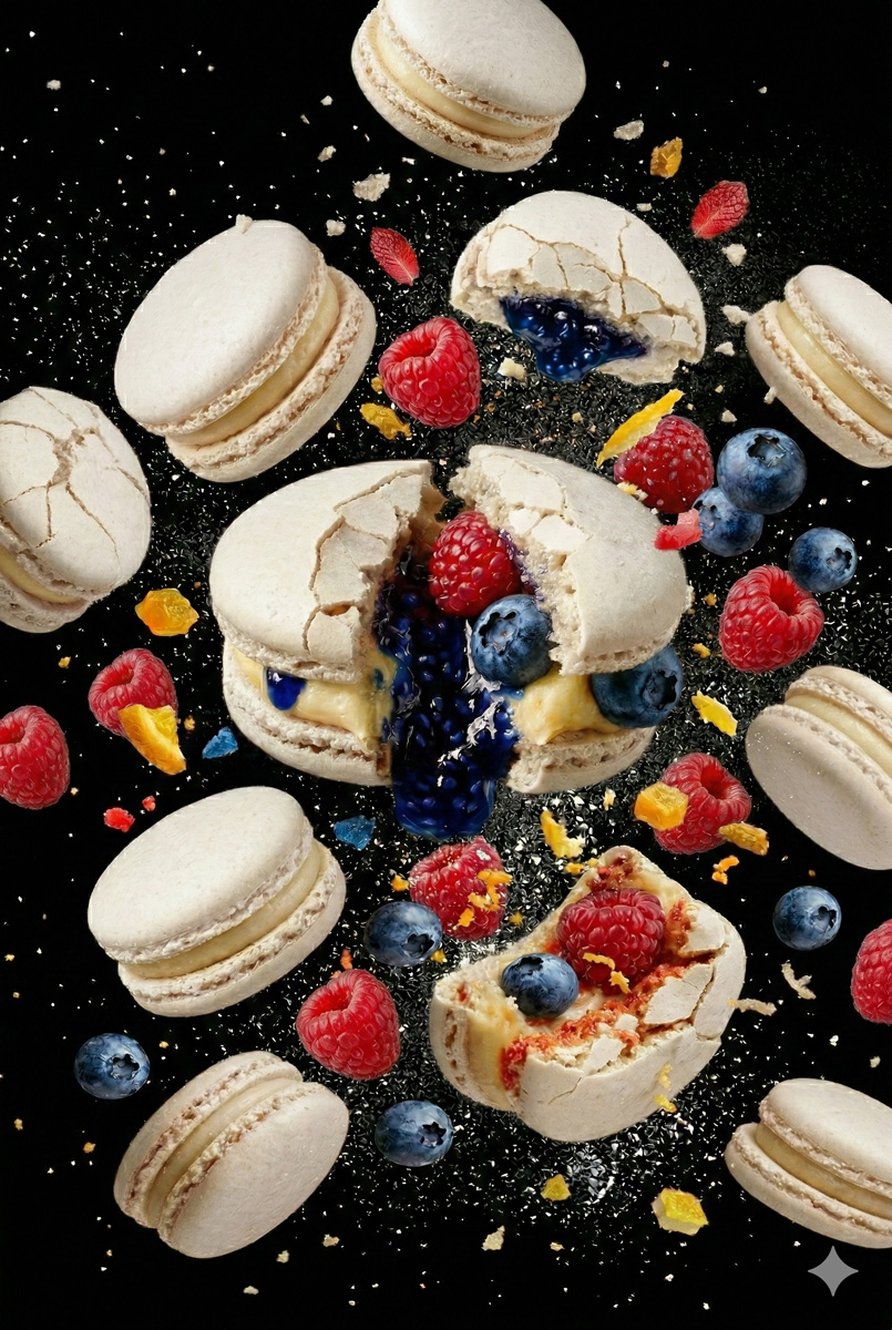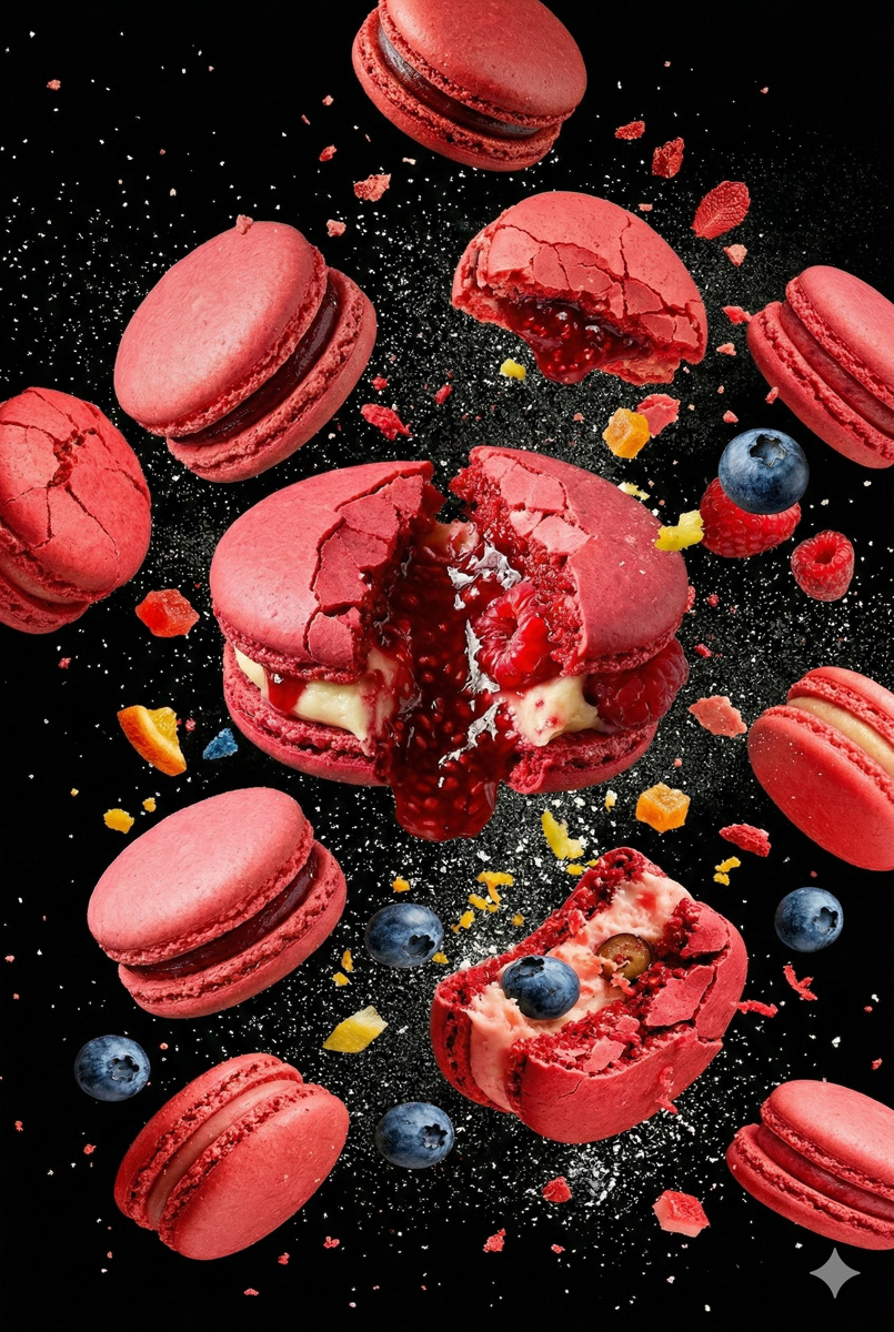 Floating Macarons with Cracked Shells Prompt for Nano Banana 2